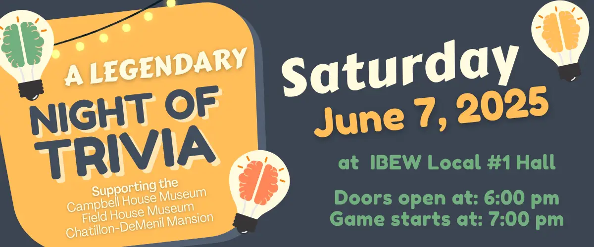 Join the Campbell House Museum, Field House Museum, & Chatillon-DeMenil Mansion for a Legendary Night of Trivia on June 7, 2025, at the IBEW Local #1 Hall! Doors open at: 6 p.m. Game starts at: 7 p.m.